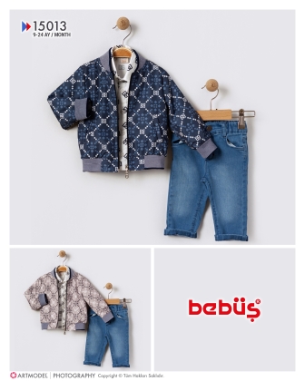 BEBÜŞ DG DESEN TRICOLU 3LÜ ERKEK BEBE TAKIM 09-12-18-24 AY