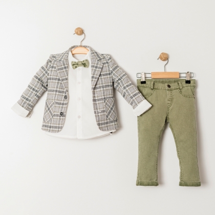 BEBÜŞ ÇİZGİLİ CEKET 3LÜ ÇOCUK TAKIM