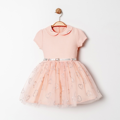 BEBÜŞ KALP DESENLİ ELBİSE 2Lİ KIZ ÇOCUK TAKIM